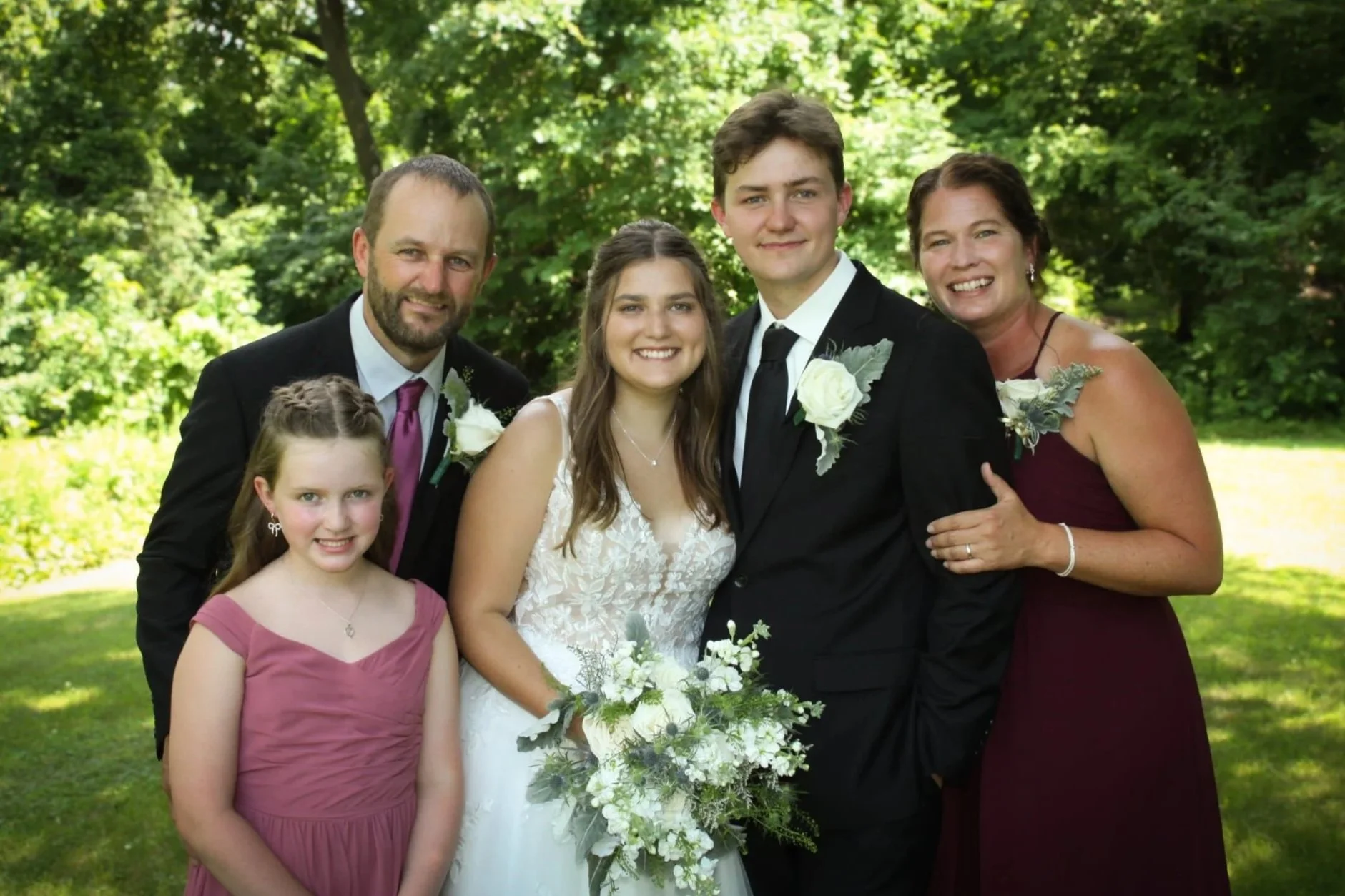 Our family - our most recent family photo from our son’s wedding in July of 2025.